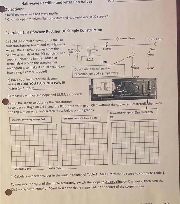 Solved Halfwave Rectifier and Filter Cap Values Objectives